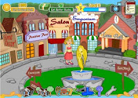 You can decorate your character’s home, buy new clothing or visit the salon and go to the Better Pets Pet Shop to adopt puppies, kittens and even magical creatures like unicorns. The town looks very much like a small town.You visit the shops by clicking the door or walking right up to them. you can visit the different sections by clicking the signs or walking down the paths.