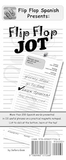 Finally the Flip Flop Jot really helped. I hung it on my fridge to keep up with my grocery list and then took it to the store with me. At the top is a phrase with three words that can be used in the phrase. For example You can say I have to eat: Tengo comer or I have to cook; Tengo concinar. I practiced the phrases over and over again while shopping and then used them when I got home. If I mispronounced something my husband corrected it for me.